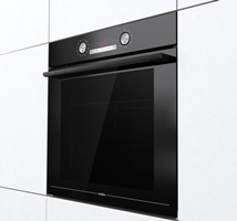 Táto elektrická rúra v elegantnom prevedení čierneho skla vám okrem tradičného pečenia otvorí dvere k ďalším moderným tepelným úpravám pokrmu. Pokiaľ si radi pochutnávate na hranolkách alebo kuracích nugetách, ale nedoprajete si ich tak často kvôli vysokej kalorickej hodnote, môžete tiež skúsiť program pre teplovzdušné fritovanie bez tuku. Ďalej je rúra vybavená 12 programami pečenia, ktoré sú navrhnuté presne podľa potrieb konkrétnych jedál. Vykúzlite napríklad výbornú pizzu ako z talianskej reštaurácie (program Pizza 300 °C), pomaly upečiete pečienku a efektívne rozmrazíte hotové porcie jedla. Teleskopický rošt zabezpečí ľahšiu a bezpečnejšiu manipuláciu s plechom, zatiaľ čo tiché zatváranie a otváranie dvierok prinesie komfort pri každodennej prevádzke. Chytro rozmiestnené vyhrievacie telesá a extra veľký objem 77 l zaručujú dokonale prepečené a chrumkavé jedlo zo všetkých strán. Túto vlastnosť oceníte najmä pri príprave hydiny alebo domáceho chleba. Rúra vás zaujme určite aj variabilným rozpätím teploty od 50 do 300 °C. Perfektné vyčistenie parou zaistí funkcia ECO CLEAN, vďaka ktorej odstránite aj väčšie nečistoty bez nutnosti použiť čistiaci prostriedok. Rúra spadá do ekologickej triedy A.